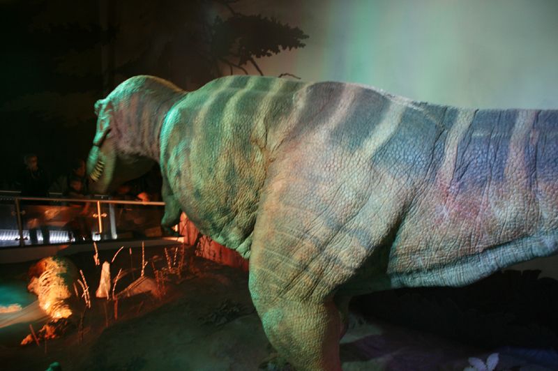 이건 뼈대 위에 가죽을 씌우고 움직이는 모터들을 달아서 소리를 내며 움직이는 공룡!