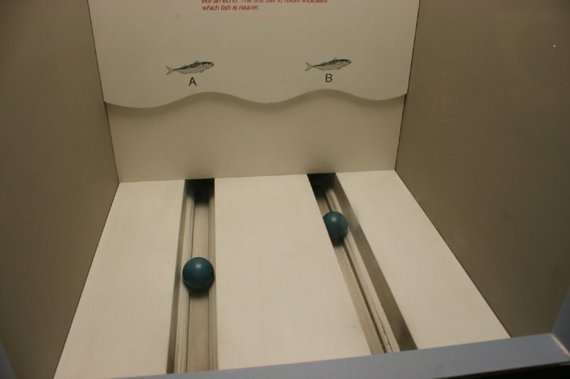 위 사진은 구슬을 튕겨봄으로써 돌고래가 어떻게 초음파를 써서 의사소통을 하는지,