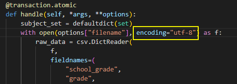 이럴 땐 아래처럼 encoding="utf-8" 을 추가해주면 잘 동작한다.